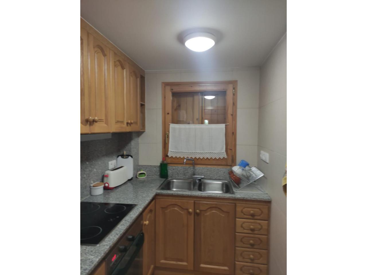 DescripciónApartament en lloguer els mesos de Juliol i. Preu pel mes Juliol€ , agosto ya esta alquilado. 2 habitacions dobles (1 doble amb bany), 1 hab. amb dos llits, 1 bany amb plat de dutxa, cuina equipada, menjador amb balconet, plaça de garatge, zona ajardinada