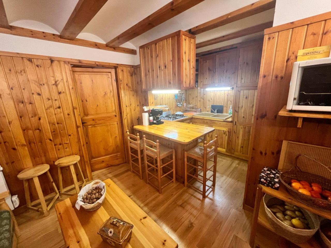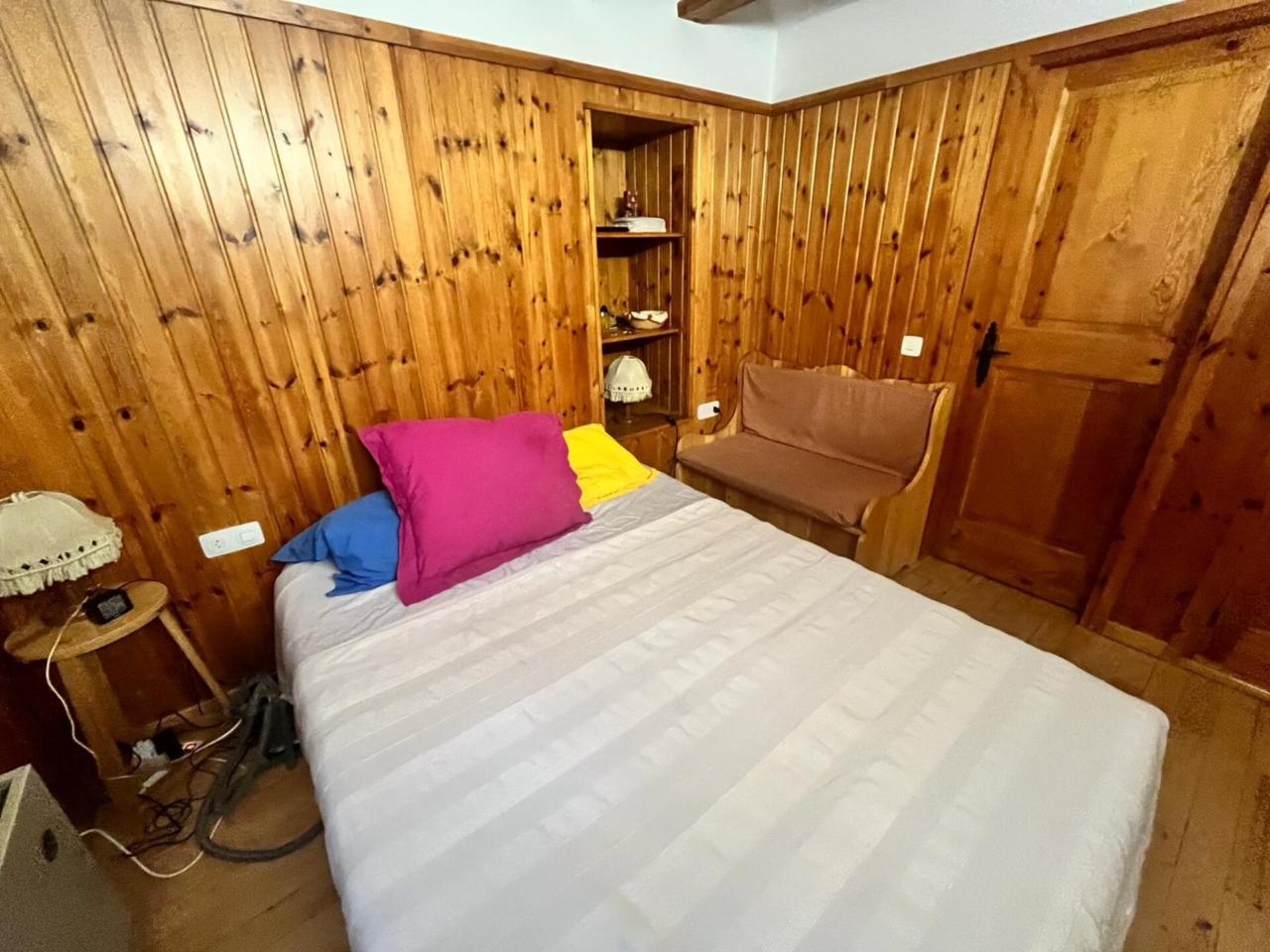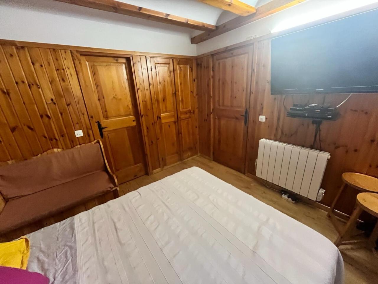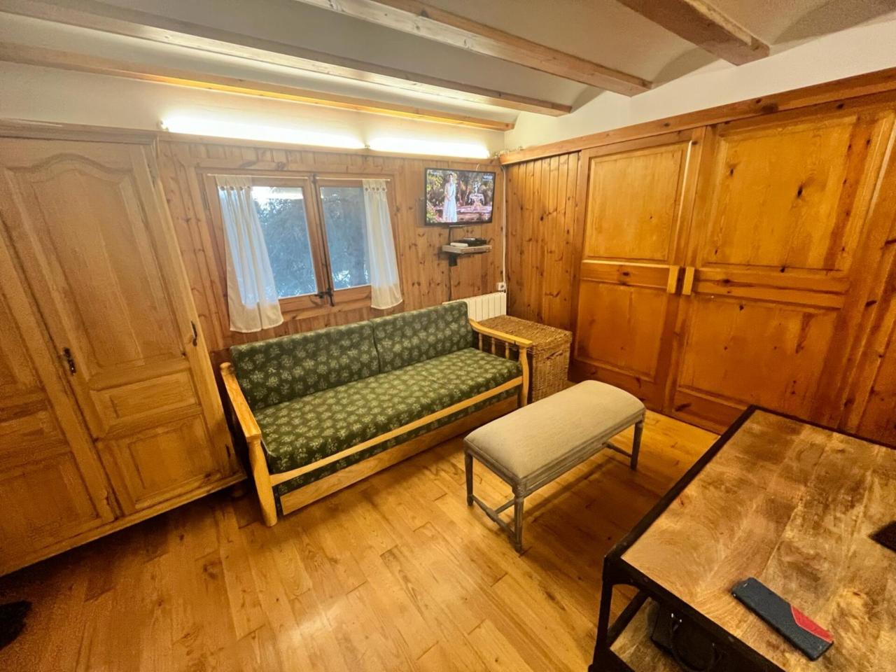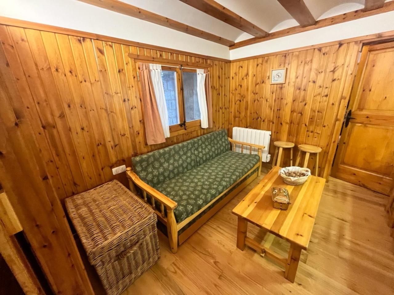 Cocina-comedor equipada Salón con chimenea Dormitorio con cama matrimonial Baño con bañera Capacidad para 8 personas: 3 sofás-cama en salón/comedor y una cama de 140 cm en el dormitorio Suelos de parquet de madera de castaño Paredes exteriores de 60 cm con revestimiento interior en madera